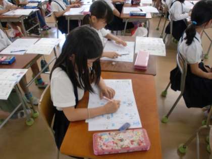 筆順だけでなく、姿勢にも気をつけて書いています。