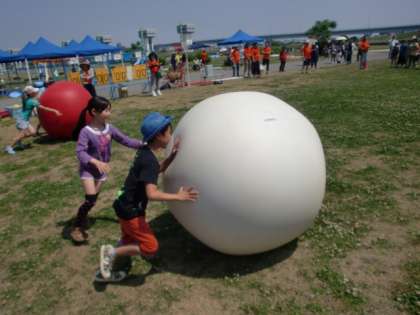 午前中の運動会では、大玉ころがしなど10種類の競技がありました。