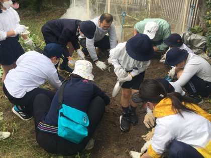 昨日の2年生に次いで、なかよし学級でも芋掘りをしました。