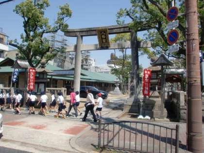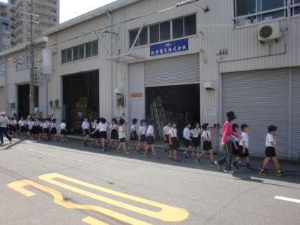 学校の周りに、どんな建物があるのか、どんな人が働いているのかを見て回りました。