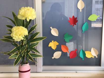 今回はお花が少し多くて、校長室前にたくさん生けられました。