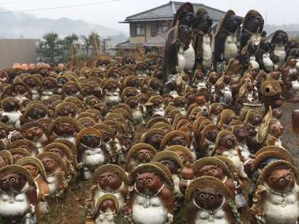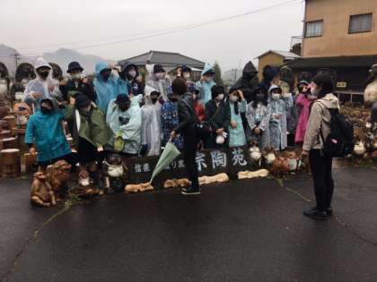 陶器の里、信楽に到着しました。まずは、タヌキの前で記念撮影!