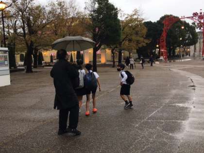 コースターの場所を訊く子、乗り終わって出てきた子、これから乗りに行く子。