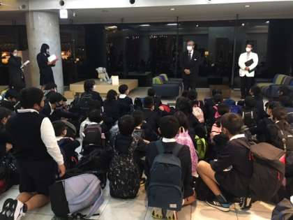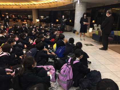 ロビーでの入館式です。実行委員さんがホテルの支配人に挨拶をしました。