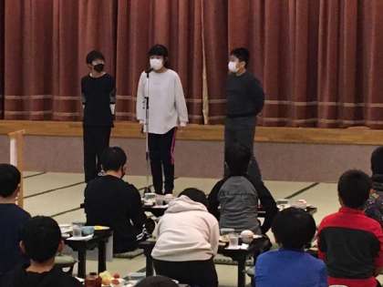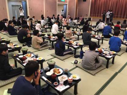 コロナ対策で、全員前を向いて、喋らず食べます。