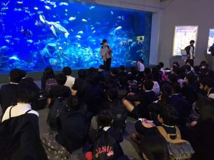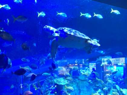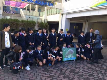 鳥羽水族館に到着しました。 9時開館と同時に入館、記念写真を撮って、入ります。
