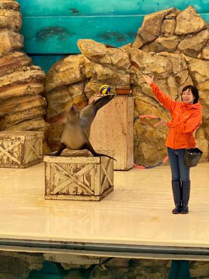 人気のアシカショー、開始前に収容人数がいっぱいになったようで、ほとんど入れませんでした。