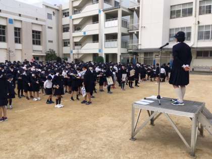 中・低学年の子には少し難しかったかもです。が、集会委員さんがどんどん歌う歌声に、感心しました!!ありがとう。