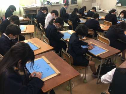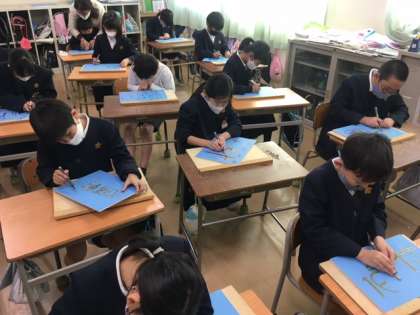 4年生では図工の授業で彫刻に挑戦しています。先日から始めたばかりで、今日から下絵に沿って彫り始めました。