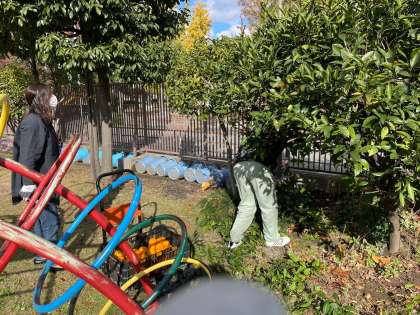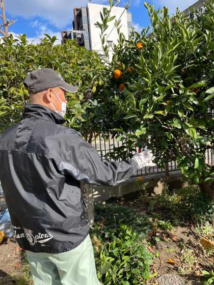 管理作業員さんとスクールサポートスタッフさんとミカンの収穫をしました。