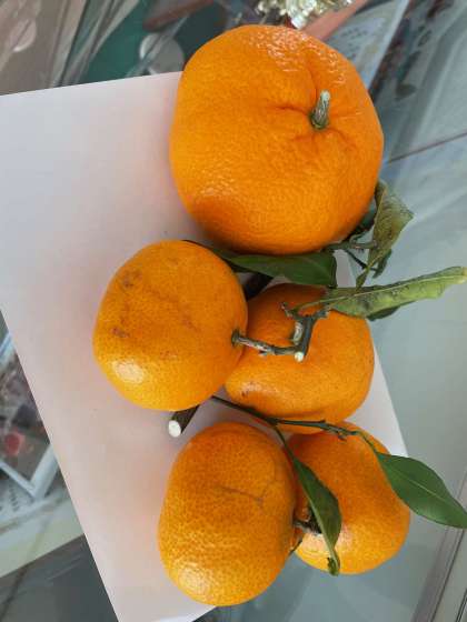 たわわに実り枝が垂れ下がっています。売っているミカンよりサイズはかなり大きめです。酸味が少し効いていて濃厚な味です。職員室前にあるみかんを興味深そうに眺めて香りを味わっていました。