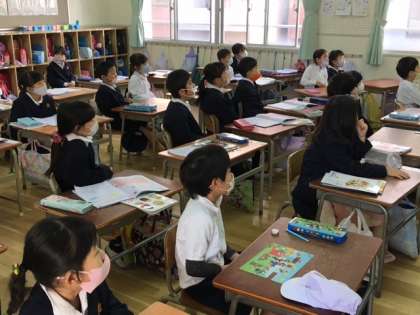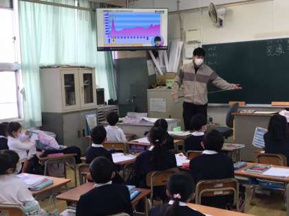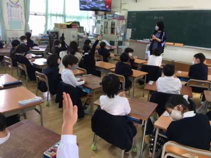 NHK for schoolの番組を観て、交通事故の怖さと注意点を知ってもらいました。子どもたちは、危ない場面に「ア〜!!」と大きな声を出して反応しながら、しっかりと交通ルールの大切さの一部分を学びました。