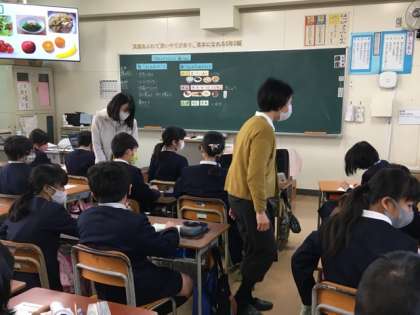 今日は、5年生の栄養指導で、他校の栄養教諭の先生に来ていただきました。