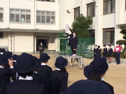 保健委員会からは、毎日を健康で元気に過ごすために、早寝早起き・偏食しない適切な食事・手洗い・うがい等、コロナだけではなく、ウイルスに負けない身体づくりについて、お話してくれました。