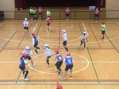 室内運動クラブは、これも究極の小学生スポーツ、「オニゴ」です。本格的にチームに分かれてオニゴをしました。