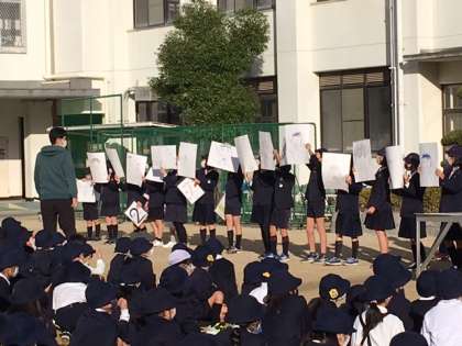最後に班長がみんなの前に並んで完成した絵を掲げました。