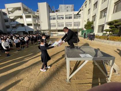 校長先生からは、先週のマラソン大会でのみんなの頑張りについてのお話がありました。学年での順位は最後だったけども、一度も歩くことなく、ゴールまで走り続けた4年生の子の姿に感動したと。