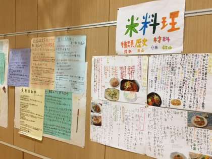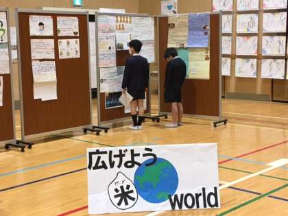 5年生は、「広げよう 米(マイ)World」。バケツ稲作りから始まって1年間かけていろんな面から取り組んできた「お米」について発表しました。お米の歴史、世界の米料理、飢餓問題、食品ロスと、研究が広がりました。