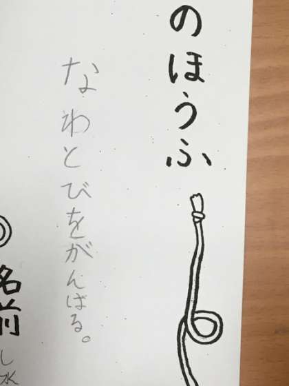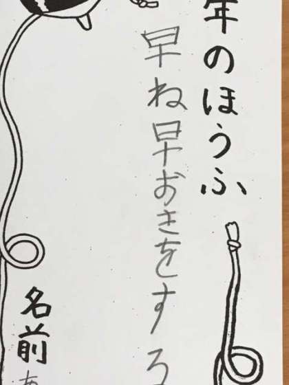 写真のように、「早寝早起きをする」「友だちと仲良くする」「縄跳びを頑張る」や、「体育の成績をよくする」「字をきれいに書く」「鉄棒を頑張る」などの他、ダンス・サッカー・そのろばん・空手などの習い事をがんばる、そして「弟のめんどうをみる」と書く子もいました。