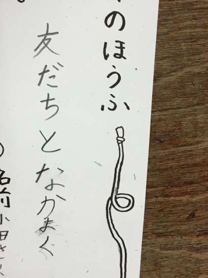 2年生の教室では、お手紙を配った後、それぞれに短冊が配られて「今年のほうふ」を書きました。