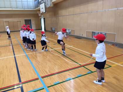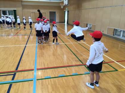縄跳び週間に向けて、1年生の体育の授業でも、縄跳びにチャレンジしています。