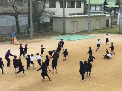コロナ感染がまた多くなってきたので、昼休みの運動場遊びも2学年ずつでのローテーションです。