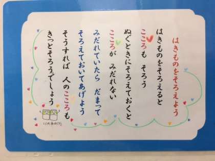 「・・・みだれていたらだまってそろえておいてあげよう。そうすれば、きっと人のこころもそろうでしょう」