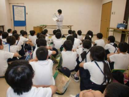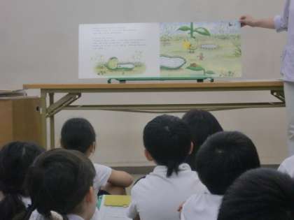 はじめに図書館の館長さんから説明を聞き,その後で大きな絵本『そらまめくんのベッド』を読んでいただきました。