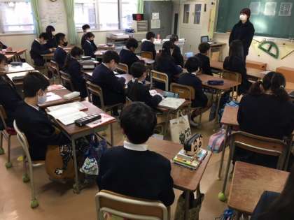 コロナ禍で集まることを避けて、放送での朝会を行いました。