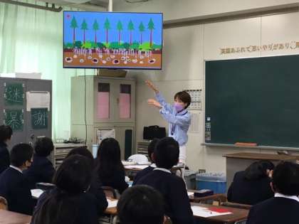 水は、自然によって育まれます。私たちは長い年月をかけて水を育む森を作ってきました。これからも、人類の知恵と工夫で地球の水を、水を育む土を大切にしていかなければ、と強く思う授業でした。