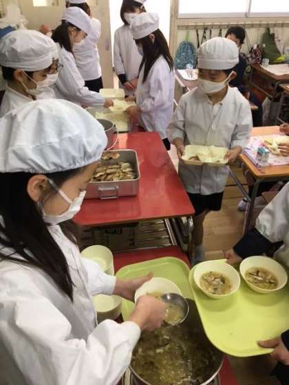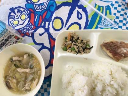今日の給食献立は、ごはん・赤魚のレモン醤油かけ・高野豆腐の炒り煮・うすくず汁・牛乳です。