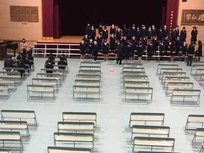 毎年恒例で、5年生が椅子並べを手伝ってくれました。