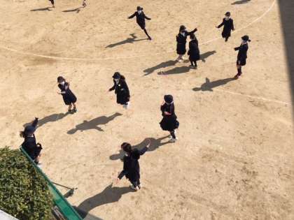 今日の15分休みは、5年生です。久しぶりの暖かい陽射しの中、みんな、それぞれに楽しそうに遊んでいます。