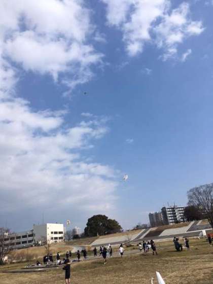 下の写真では、青空の中に見える黒い点になっている凧です!!