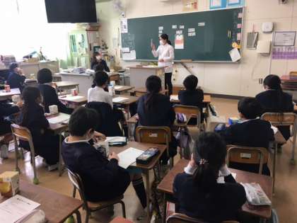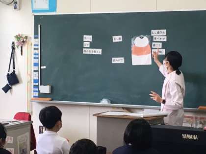 校医の歯科医さんと薬剤師さんにお越しいただいて、虫歯についてや、歯を大切にする方法を教えてもらいました。