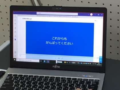 今朝、「卒業をお祝いする会」を行いました。全校児童が講堂に集まってしたいところですが、コロナ禍のためティームズで行いました。