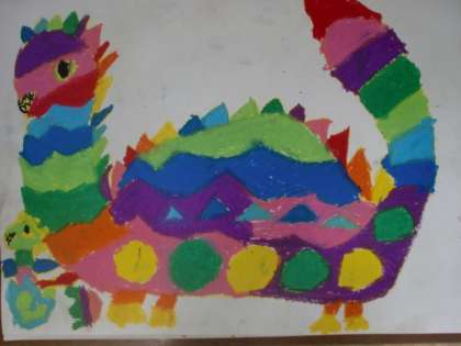 1年生 図画工作科「おしゃれな きょうりゅう」3