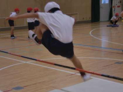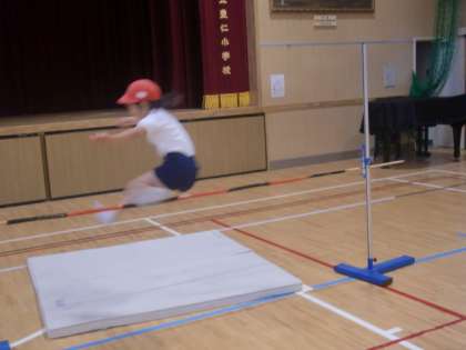 今日は,初めてでしたのでフォームにこだわれず,自分なりに跳ばしてみました。それでも,なかなか決まっている子もいました。