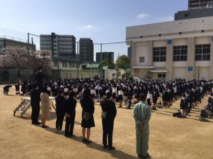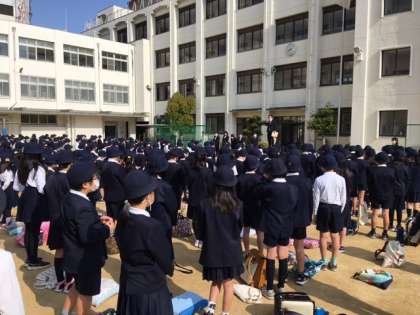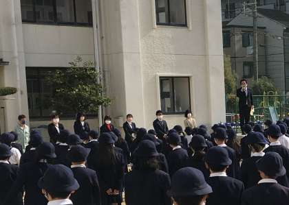 8時30分から始業式を運動場で行いました。