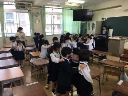 1年生の音楽の授業では、先生のリズムに合わせて、とても楽しそうに身体を動かせていました。