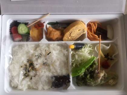 菅島にある あかげ屋さんの貴一さんが作ってくださったお弁当です。島の食材を使っています。