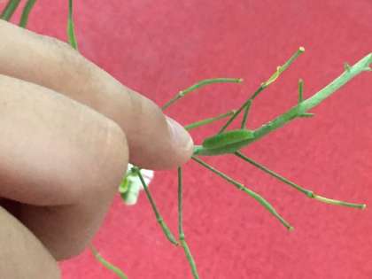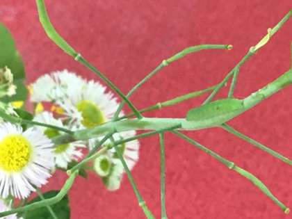 3年生の教室です。先日、校庭隅のキャベツの葉っぱで見つけたモンシロチョウの卵から、幼虫が誕生していました。