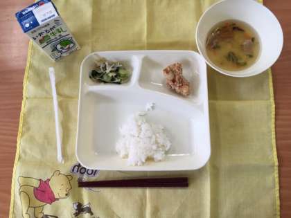 今日の給食献立は、ごはん・鶏肉のから揚げ・チンゲンサイともやしの甘酢あえ・牛乳です。