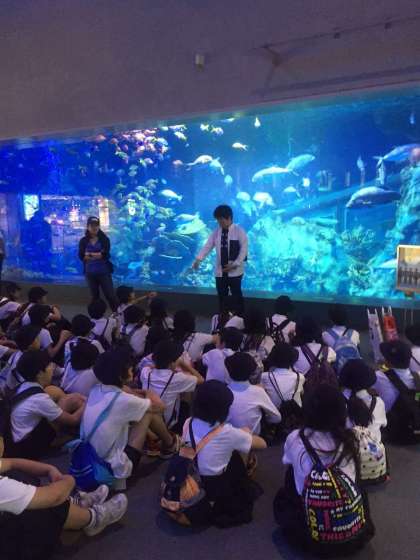 エントランスホールにある大水槽の前で注意を聞いて、後は班活動です。