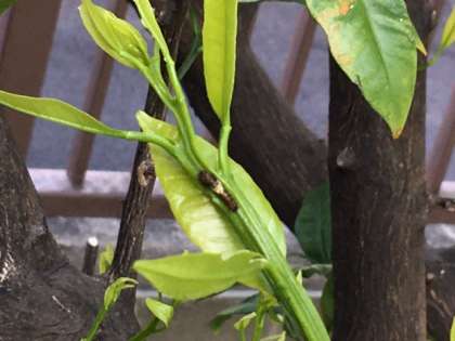 アゲハ蝶の幼虫がいました。そう言っている間に、子どもたちの目の前で、アゲハ蝶が卵を産んでいきました!