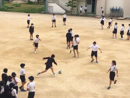 今日の昼休みの運動場割当ては、5・6年生です。今もドッジボール&オニゴが全盛です。