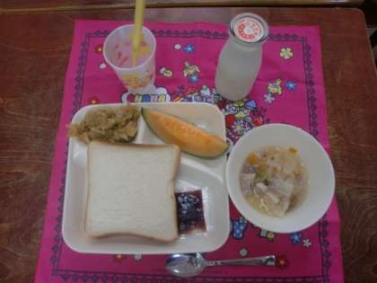 今日の給食には、メロンが出ました。
