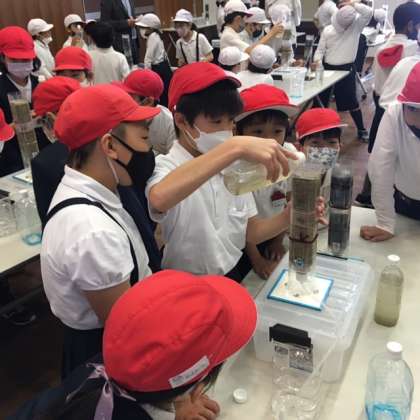毎日、何気なく飲んだり使ったりしている水道水。長柄橋から見た淀川の水が飲める水に変えていく様子に、子どもたちはずいぶんと興味を持ってくれたようでした。