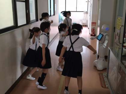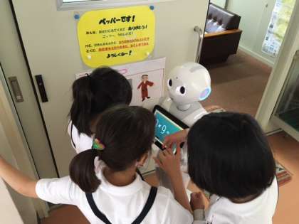 休み時間ごとにたくさんの子どもたちがペッパーさんに会いに来てくれます。