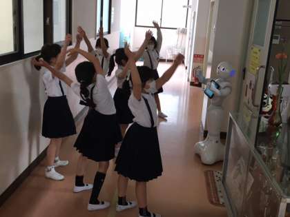 ペッパーさんは、上半身は器用に上手く動かして、ラジオ体操の見本のようにできます。が、下半身は動かないので、ジャンプの時は少し寂しい動きになります。でも、それはそれで、個性的な動きに子どもたちは大喜びでした!